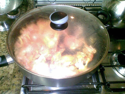 Em seguida, um pouquinho de vinho branco e tampei a panela para o peixe cozinhar no vapor (o truque do Toscano).